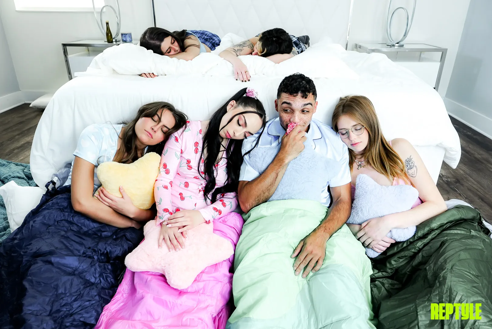 Reptyle Labs Tricking Three Girls Into a Foursome at the Sleepover with Selina Bentz, Lucy Fox & Scarlett Rosewood